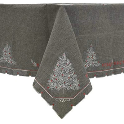 Christmas Tree Embroidered Tablecloths Napkins Fabric Dark Grey 52 x 70"