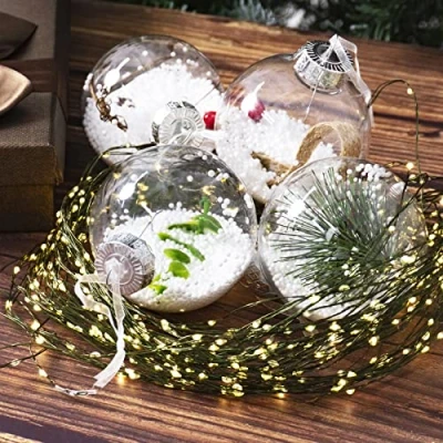 DELUXE CHRISTMAS ORNAMENTS: Make your holiday decor a touch of vintage and classic flair with this beautiful set of ornaments. FILLABLE CHRISTMAS BALL: This Christmas balls has the beauty and luster of real glass. Lightweight design, won't weigh down the Christmas tree branches UNIQUE SPLENDOR: The combination of 4 special fillings with snow , pine needles, branches, leaves and webbing make the festival full of natural vitality. EASY TO SET UP: Each ball ornament equips with a with cap, and string hangers. Lid opens and can be filled with craft. This exclusive design will allow you to build and fill your creative and decorate with more possibilities. UNIVERSAL SIZE: Ornament size is 80mm in diameter. Perfect home decor for a variegated display of Christmas, wedding, engagement, anniversary, party