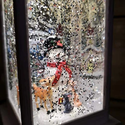 AmazonSnowtime 31cm White Water Spinner Lantern Snowman Scene LED