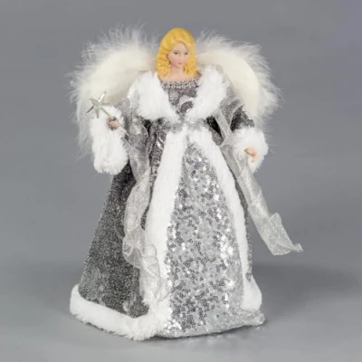 Christmas Workshop 12" Silver & White Dress Tree Top Angel