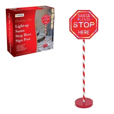 Christmas Workshop 1m Light Up "Santa Please Stop Here" Sign Post
