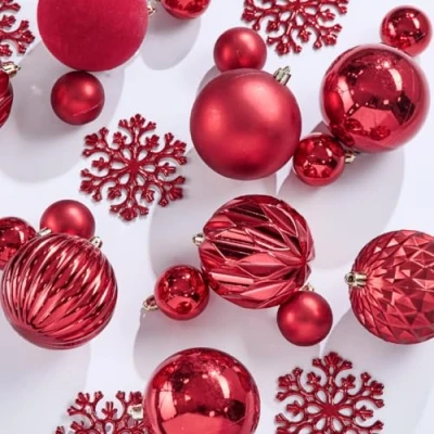 50 CHRISTMAS BAUBLES – This elegant set of 50 baubles will beautifully decorate your Christmas tree this festive season. The baubles are shatterproof and feature a red colour scheme that will add a touch of grandeur to your seasonal décor. ELEGANT DESIGN – These Christmas baubles are finished in red with mixed designs and textures that will beautifully complement your existing Christmas decorations. The set includes a mix of large, small and star shaped baubles. HANGING STRING – Each of the 50 baubles are made from plastic and come collectively packaged in a cardboard box, so they can be stored away when not in use. They each have a pre-attached hanging string to make decorating your tree even easier. PERFECT SIZE – The baubles various sizes mean they sit eloquently yet stand out on your Christmas tree. Their lightweight design prevents them from weighing down the branches. The set includes 10 large baubles each measuring 8cm, 32 small baubles each measuring 4cm and 8 small star baubles. CHRISTMAS WORKSHOP – The Christmas Workshop is the leading supplier of all things Christmas related. From Christmas trees & festive ornaments, to fairy lights and projector lights, you can find everything to decorate your home at the Christmas Workshop Amazon page.