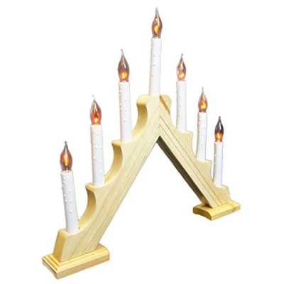 Electrical WorldSize: L40 xH34 x5cm, Cable:1.5m, 7 Replaceable BulbsThis beautiful, pine flickering candle bridge will create a warm glow around it with its 7 lightsIt is perfect to be placed in the window for all to see or on a table top or mantle piece for you to enjoy yourself.The bridge is approx. 43 x 40 x 5cm and the bulbs are replaceable which means that even when a bulb blows, you are able to carry using it for many years to come!The pine wooden effect of the bridge ensures that it will go with any Christmas theme that you already have and the flickering lights will give the sense of a real flame with the danger of it!