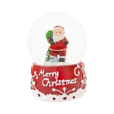 Christmas SnowglobeThis classic festive snow globe will bring a sense of fun and enjoyment to your home this Christmas and for many more Christmases to come!This Christmas ornament features a classic scene of a Santa holding tightly onto his Toy sack caught in a snow blizzard inside the snow globe.This snow globe plays the tune: "We Wish You A Merry Christmas", which is sure to get the whole family singing along together!The festive ornament measures 10.5 x 10.5 x 14.5cm, making it perfect to place on a table top, mantelpiece or windowsill.Technical Specification:Colour: Red; WhiteDimensions: Length: 105mm x Height: 145mm