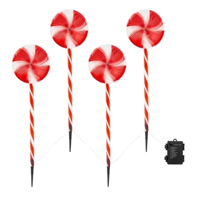 Christmas Workshop Set of 4 Lollipop Path Lights 8 Functions