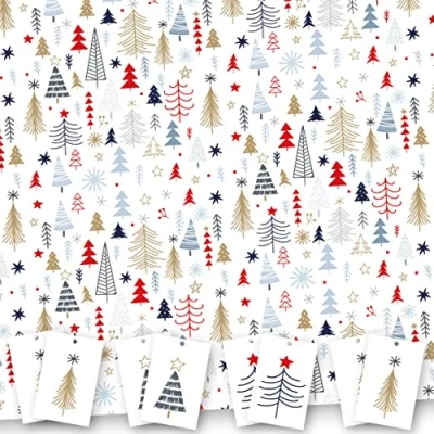 Christmas Wrapping Paper. 8 XL Sheets (50 x 70cm). Tree Design. Gift Wrap Pack with Matching Tags. Cutting Grid on Reverse. Printed in UK. by Absolutely Yours.