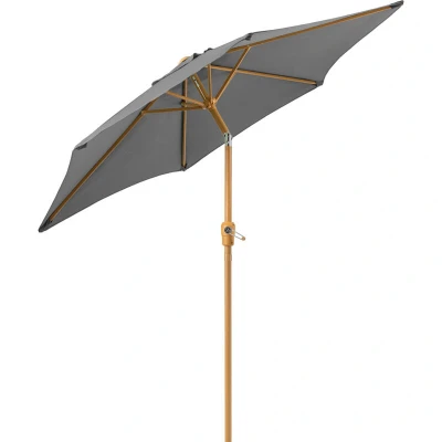 CHRISTOW 2.4m Tilting Garden Parasol with Crank Handle, 38mm Steel Pole, Wood Effect Finish, Outdoor Sunshade Umbrella, Heavy Duty Polyester, UV30+ Sun Protection, Water Resistant, Air Vent (Grey)