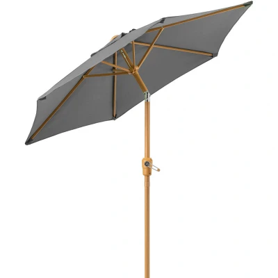 2M STEEL WOOD EFFECT PARASOL: Shade yourself in style with this 2m Steel Wood Effect Parasol from Christow. Boasts a steel pole for strength and stability with a light wood effect finish for a stylish, natural look. Pairs beautifully with a wooden bistro table. Fits parasol bases with a 38mm adaptor (base not included). UV30+ PROTECTIVE CANOPY: Grey canopy is made from heavy-duty 180g/M2 polyester for superior strength and durability. Boasts a UV30+ rating to provide excellent protection from the sun's harmful UV rays. Plus, it's water-resistant and fast-drying. With a 2m diameter, it's perfect for shading a 2-seater bistro table. CRANK HANDLE TO EASILY OPEN: No need to faff around with a fiddly pulley system because the parasol has a crank for easy operation. Simply turn the crank handle clockwise to open the canopy or anticlockwise to close it. For a stylish, matching look, the handle's colour is the same as the wood effect finish on the pole. TILTING MECHANISM TO ANGLE CANOPY: Shade yourself from the sunshine, regardless of its position, using the parasol's tilt mechanism. Made from zinc for enhanced rust-resistance, it allows you to easily tilt the canopy. Perfect for blocking out the low-lying sunshine and keeping you shaded from sunrise to sunset. AIR VENT FOR AIR CIRCULATION: An air vent on top of the canopy allows air to circulate more freely beneath it. Perfect for keeping you cool when you're relaxing on hot, sunny days. The vent also prevents the canopy blowing inside out if there's a sudden gust of wind. Plus, it safeguards it from blowing up and over.