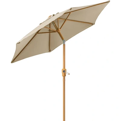 ManoManoStay shaded and cool when relaxing in your garden with this 2m Steel Wood Effect Parasol from Christow. Combining the strength of a steel pole parasol with the beautiful, natural look of a wooden parasol, it's perfect for pairing with a wooden bistro table. Plus, it looks fantastic displayed on wooden outdoor decking. 2m UV Protective Canopy Canopy made from heavy-duty 180g/M2 polyester which is water-resistant, fast-drying, and boasts UV30+ protection. With a diameter of 2-metres, it's an ideal size for smaller gardens and 2-seater bistro tables. Crank Handle to Easily Open Designed with a crank handle to easily open and close the canopy. Simply turn it clockwise to open the canopy or anticlockwise to close it. For a stylish finish, the crank is coloured to match the wood effect pole. Tilt Function for All-Day Shade Shade yourself from the sun, whatever its position, using the parasol's tilt mechanism. Made from zinc for enhanced rust-resistant, it allows you to easily angle the