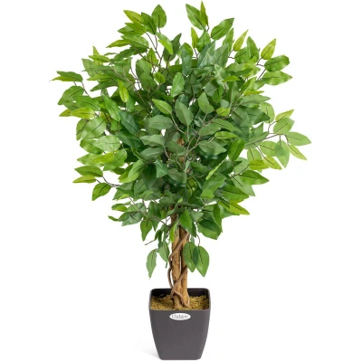General description Looking to add some greenery to your home but lack green fingers? Look no further than this Artificial Green Ficus Tree. It requires no sunlight, water, or pruning, making it easy to maintain. Plus, it looks every bit as beautiful as a real Ficus tree and comes pre-potted for easy display. Suitable for indoor and outdoor display, this tree brightens up homes, offices, and restaurants, and looks stunning when displayed outside. Technical specifications Height: 90 cm (3 ft) Material: PEVA leaves Pot: Faux cement pot, weighted with concrete Compatibility and accessories For outdoor display, it is recommended to treat the leaves with a UV protective spray to prevent fading. If displaying outside, consider repotting in a heavier pot for extra wind-resistance. Installation Pre-assembled; simply straighten the branches and display. Usage Ideal for indoor and outdoor decoration in homes, offices, and restaurants.