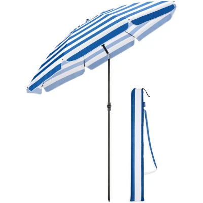CHRISTOW Beach Umbrella Portable Tilting Parasol Sun Shade with UV Protection and Bag 2m (Blue White Striped)