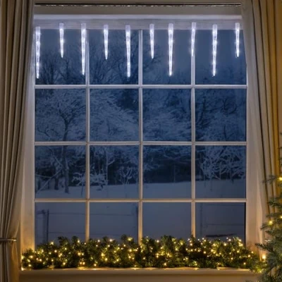 BATTERY POWERED ICICLE LIGHTS: Make your home look magical at Christmas with these Battery Operated Hanging Icicle Lights from Christow. Suitable for indoors and outdoors, the lights have a 3m lit length and contain 10 hanging icicles, beautifully lit by 40 white LEDs. 10 ACRYLIC ICICLES & 40 LEDS: Light string contains 5 large icicles, each fitted with 5 LEDs, and 5 small icicles, each fitted with 3 LEDs. Icicles made from clear acrylic to produce a bright enchanting glow when lit by the LEDs. Perfect for rooflines, guttering - even a mantelpiece! FLASH MEMORY FUNCTION: Love a bit of festive sparkle? Press the button on the battery box to choose from 8 light sequences, ranging from twinkly effects to a static glow. An in-built memory chip automatically memorises the last setting selected whenever the lights come on. TIMER FUNCTION (6HRS ON/18HRS OFF): No need to worry about turning the lights on and off. Simply activate the timer and they'll automatically light up at the same time every night. Plus, they'll automatically turn off after six hours. You can also manually turn them on and off. OUTDOOR-SAFE BATTERY BOX: Powered by 4 x AA batteries with a weatherproof IP44 battery box. Gives you the freedom to display the lights anywhere, inside or outside your home. Battery box has a 50cm clear cable, allowing you to easily hide it behind nearby objects or foliage.