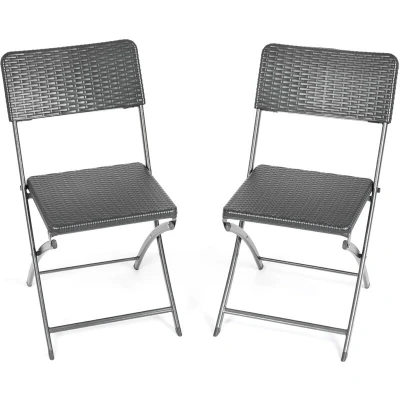 CONTEMPORARY REPLICA RATTAN CHAIRS: Perfect for relaxing in your garden or using at events, these folding chairs from Christow are made from tough blow-moulded plastic which is beautifully textured to resemble the intricate weave construction of real rattan furniture. STRONGER & EASIER TO CLEAN THAN REAL RATTAN: Replica rattan material won't warp, sag, dry, or fade out over time like real rattan. It's far more durable than real rattan and easier to clean and maintain. Simply give it a quick wipe with a damp cloth to remove any staining. FOLDING POWDER-COATED STEEL LEGS: Legs are made from heavy-duty steel with a powder-coated finish for enhanced rust-resistance. Chairs fold flat so that you can easily pack them in the boot of a car and take them camping. Great for campervans and motorhomes, too. SIMPLE TO STORE WHEN SUMMERTIME IS OVER: Real rattan furniture is big, bulky and difficult to store away, which is why many people leave it outside all year round and run the risk of it fading. Because the chairs can be folded flat, they're easy to store in a shed or garage. SIZE: 82cm x W40cm x D40cm (measured to backrest). SEAT HEIGHT: 47cm. Weight capacity: 120kg. PLEASE NOTE: Seats and backrests are made from replica rattan, not real rattan. If you have any questions about the chairs, our team will respond as soon as possible.