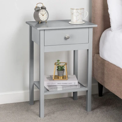 CHRISTOW Grey Bedside Table With Shelf & Drawer Bedroom Nightstand 60cm x 40cm 30cm