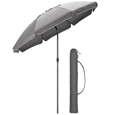 CHRISTOW Portable Beach Parasol Tilting Garden Sunshade Umbrella UV Resistant 2m (Grey)