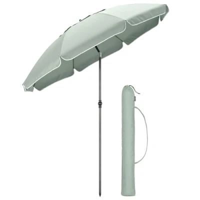 CHRISTOW Portable Beach Parasol Tilting Garden Sunshade Umbrella UV Resistant 2m (Sage)