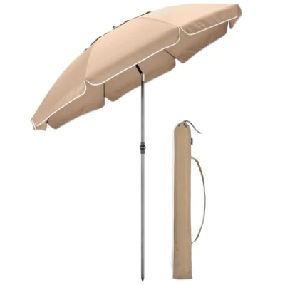 CHRISTOW Portable Beach Parasol Tilting Garden Sunshade Umbrella UV Resistant 2m (Taupe)