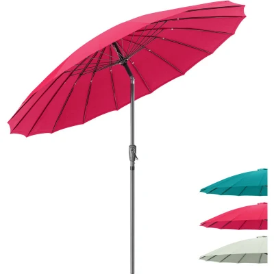 ManoManoShade yourself in style with this 2.6m Shanghai Parasol from Christow. Designed with a beautiful oriental-inspired canopy in a choice of modern colours, it’s a stylish way to brighten up your patio or decking. Plus, it has a tilt mechanism to block out glare from the low-lying sun. UV Protective Canopy 2m canopy is made from durable 180g polyester and is rated UV30+ to protect you from the sun’s harmful UV rays. Diameter makes it perfect for a two-seater or four-seater bistro table. Crank Handle to Easily Open Shanghai has a crank handle to easily open and close the canopy. With its circular oriental-inspired shape, the canopy looks just as attractive when it’s closed as it does when it’s open. Tilting Mechanism Press the button at the top of the pole to tilt the canopy and block out the sun as it rises and sets. Perfect if you’re enjoying an al fresco breakfast or sitting outside on a summer evening. Air Vent to Aid Air Flow An air vent at the top of the canopy allows air to