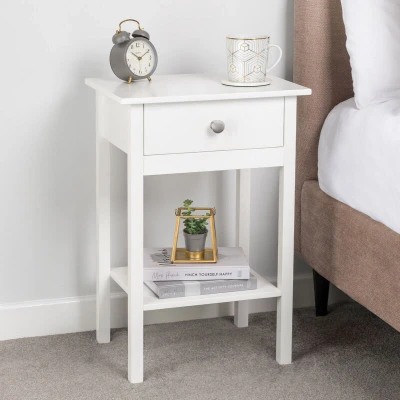 CHRISTOW White Bedside Table With Shelf & Drawer Bedroom Nightstand 60cm x 40cm 30cm
