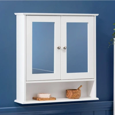 CHRISTOW White Double Mirror Wall Mounted Cabinet, Wooden Bathroom Storage Furniture, 2 Door Cupboard Unit With Shelf