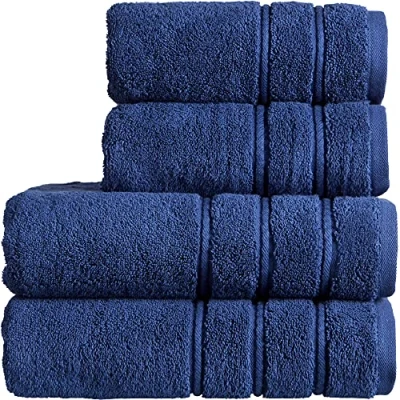 Christy Antalya Large Bath Towels Set of 4 100% Turkish Cotton 600GSM Soft Plush Luxury Towel 2 Hand Quick Dry Denim Blue