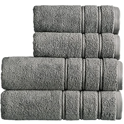 4 PIECE TOWEL SET - 2x bath towels (70cm x 125cm), 2x hand towels (50cm x 90cm). Highly absorbent 600GSM cotton, available in a stunning range of soft tones. 100% TURKISH COTTON - wrap yourself in the soft embrace of our Antalya towel as you relax after a hot bath. Turkish Cotton is super soft and feels delicate against the skin. SPA QUALITY - thick, mid-weight, plush towels, featuring a smart, sleek triple band detail that creates a spa-like feel. A timeless look to complement both modern and vintage bathrooms. OEKO-TEX MADE IN GREEN CERTIFIED - the factories that make our products have been independently certified for their environmentally friendly techniques and socially responsible working standards. 170 YEARS OF TEXTILES - elevating the everyday since 1850. For 170 years, we've had an uncompromising design philosophy, to craft high quality, beautiful products that are made to last.