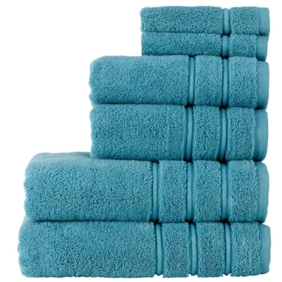 Christy Antalya Large Bath Towels Set of 6 100% Turkish Cotton 600GSM Soft Plush Luxury Towel 2 Hand Face Cloths Quick Dry Jade Teal