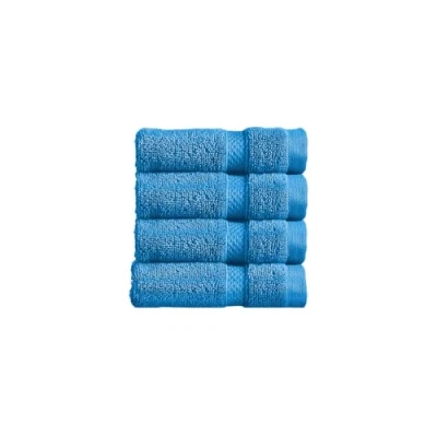 Christy Chroma Face Cloths Set Pack of 4 Soft Velvety Smooth Bathroom Flannels Bold and Bright Body Wash 100% Cotton Azure Blue
