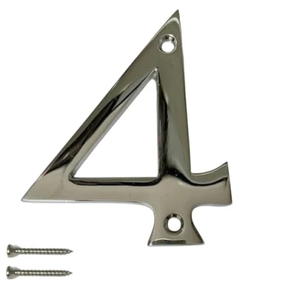 Chrome Door Numbers Screw On 3 Inch Number 4 Elegant and Bold Numerals Suitable for All Types Including Wooden uPVC Composite.