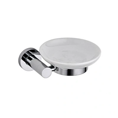 Chrome Round Style Brass Wall Mounted Bathroom Ceramic Soap Dish
