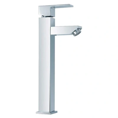 Enhance your bathroom with the Waipori Chrome Tall Mixer Basin Tap. This tap brings modern elegance to any bathroom or en-suite. Its contemporary mono basin design acts as a stylish statement piece. The tall, counter-mounted format perfectly suits freestanding basins, offering a sleek, space-saving, minimalist look. Made with a brass body and zinc handle, it features a shiny chrome finish for durability and modern appeal. The rectangular body and slim spout are paired with a streamlined lever for precise water flow and temperature control. Designed for medium to medium-high pressure systems, it includes braided tap connectors and a fixing kit for simple installation. Ideal for freestanding basins.. Chrome Tall Mixer Basin Tap Brass Zinc Clickbasin