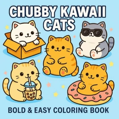 Chubby Kawaii Cats Coloring Book: 60 Bold & Easy Cat Pages for Kids, Teens, and Adults Fun, Cute, Relaxing, Adorable Designs.