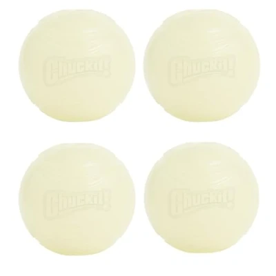 DOG BALLS GLOW IN THE DARK These glow rubber balls for dogs keep the game going even after sunset; Your dog will love its bouncy, grippy texture and you'll love how easy this Max Glow dog ball is to clean Night fun: 5 minutes under any bright light produces 20 to 30 minutes of glowing playtime, no batteries or cables required; Made of safe photoluminescent material, Medium Chuckit! size Balls for dogs fit all medium Chuckit! Launcher Size is important: Size M measures 6.3 cm in diameter and is best suited for dogs weighing 20-60 pounds. Dog balls should be small enough for your dog to carry, but large enough that the ball does not fit completely in the mouth. If in doubt, buy one size larger Make Fetch Happen: Chuckit! Performance toys are specially designed for you and your dog. Try our full range of indoor and outdoor interactive dog toys, including drinking glasses, flyers, fetch toys, other tennis balls for dogs and more Chuckit! Fetch toy for pets: Chuckit! Makes indoor and outdoor dog toys that enriches human-animal bonding and helps dogs and puppies get involved. Try our full line of ball launchers, puppy toys, flying discs, tennis balls for dogs, dog chew toys and more