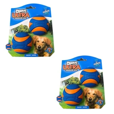 ChuckIt! Ultra Squeaker Ball Dog Toy, Durable High Bounce Floating Rubber Squeaky Ball, Launcher Compatible Toy For Dogs, 2 Pack, Medium