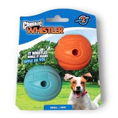 ChuckIt! Whistler Ball Dog Toy, Durable High Bounce Floating Rubber Engaging Ball, Launcher Compatible Toy For Dogs, 2 Pack, Small