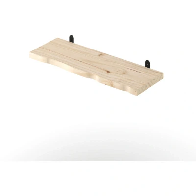 General description This Chunky Live Edge Shelf is crafted from responsibly sourced solid pine, featuring a stylish and eye-catching curved 'live edge' at the front. It offers a unique solution for filling wall space or providing additional storage in any room. The shelf can be painted or stained in any color to match your decor and is secured to the wall using discreet black 'L' shape metal brackets. Technical specifications Dimensions: L20 x W60 x H2.5 cm Weight: 1.5 kg Compatibility and accessories Metal black 'L' shape bracket included All fixings and fittings included