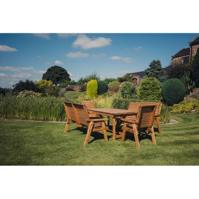 General description The Ergo 8 Seater Square Table features a durable design with a natural finish, making it ideal for entertaining friends and family. This table pairs perfectly with the Ergo chairs and benches, providing a combination of durability and comfort. The Ergo seating range is ergonomically designed with angled and extended curved backrests for ultimate comfort and lumbar support, adding a touch of natural charm to your garden. Made from premium, pressure-treated certified timber, it is designed to resist rot for up to 20 years with proper care. Technical specifications Width: 149 cm Height: 77 cm Depth: 149 cm Weight: 45 kg Timber Profile-Seat: 20 x 45 mm Timber Profile-Framework: 120 x 35 mm Timber Profile-Table Top: 120 x 35 mm Timber Profile-Legs: 95 x 45 mm Timber Profile-Arms: 95 x 45 mm Assembly: Partially assembled Other information Made from sustainably sourced timber, handmade in the UK Requires annual re-treatment to prevent rot Accessories such as umbrellas,