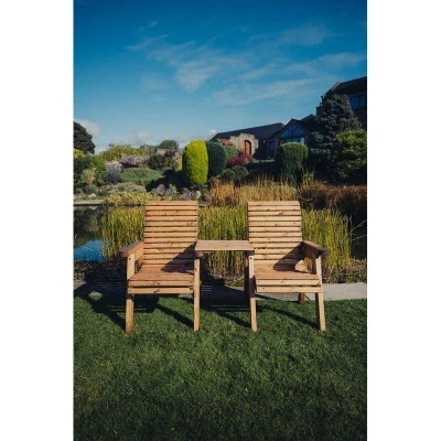 General description The Valley Loveseat is designed with comfort and durability in mind. It features a beautiful golden oak finish that adds natural charm to any outdoor space, making it ideal for spending time in the garden with a special friend or family member. The Loveseat comes with a handy straight tray that rests on the arms, allowing for easy relocation of the chairs in your garden. Technical specifications Assembly: Partially assembled Width: 170 cm Height: 95 cm Depth: 73 cm Weight: 32 kg Timber Profile-Seat: 20 x 45 mm Timber Profile-Table top: 95 x 20 mm Timber Profile-Legs: 40 x 80 mm Timber Profile-Arms: 40 x 80 mm Other information Made from the finest certified Swedish Redwood Treated with a base coat for protection against rot, anti-fungal, anti-mould, and UV protection Recommended to re-treat the wood annually to maintain its condition Accessories such as umbrellas, cushions, and footstools are not included