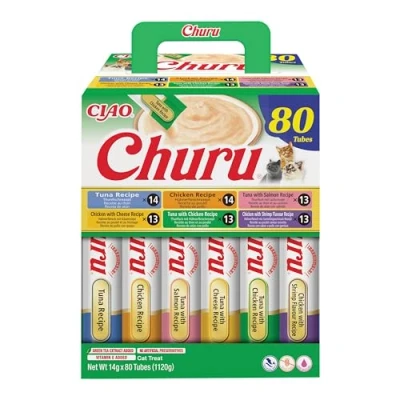 Churu by INABA Cat Treat Chicken & Tuna Variety Box 1 Pack (80 x 14g total) / Soft Creamy Treat, Delicious Healthy Snack, Purée Food Topper, Natural, Grain Free