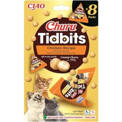 Churu Tidbits by INABA: Chicken Recipe (8 x 12g) / Soft & Chewy Filled, Baked Cat Treats with Taurine Green Tea Extract, Delicious Healthy Snack, Training Treat, Natural, Grain Free