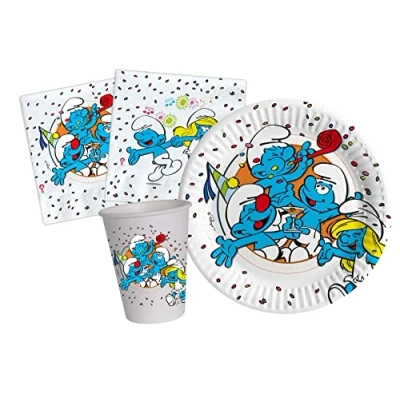Official Licensed Product The Smurfs Content: 24 plates Ø18cm, 24 cups 200ml, 40 napkins 33x33cm Eco-friendly products made in compostable paper, compliant with the new regulations Occasions: Birthdays, parties, thematical, anniversaries, celebrations, Manufacturer: Ciao