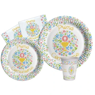 Matching First Communion Party Line Contents: 8 plates Ø23 cm, 8 plates Ø18 cm, 8 glasses 250 ml, 20 napkins 33 x 33 cm Environmentally friendly compostable paper products comply with new regulations. Occasions: Communion, Party, Theme Party, Anniversary, Celebration, Celebration, Arrangement, Events, Manufacturer: Ciao
