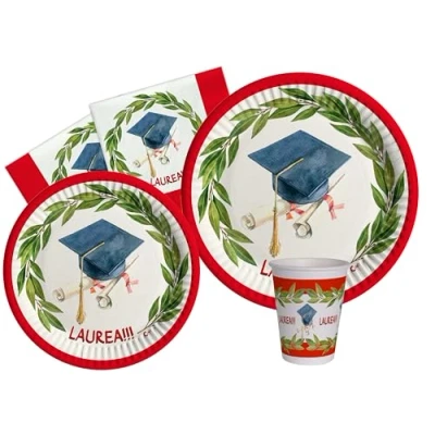 Ciao AZ145 Graduation Table Party Kit People (112 pcs Plates Ø23cm, p Ø18cm, 24 Glasses, 40 Napkins) eco Friendly, Cups, Made compostable Paper, Multicolour