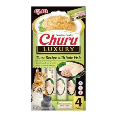 Ciao Churu Luxury Sticks by INABA Cat Treat Tuna with Sole Fish Recipe (4 x 14g) / Soft & Creamy Treat, Delicious Healthy Snack, Purée Food Topper, Pill Assist, Natural, Grain Free