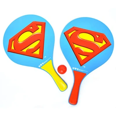 Genuine Warner Bros / DC Comics Licensed Product Set of 2 wooden racket and colored ball Superman print on 1 side Occasion: beach, sea, pool, outdoor, games, party, theme party, Manufacturer: Ciao
