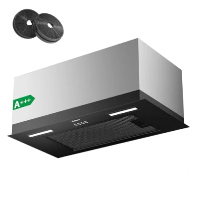 Seamless Design & Integrated Installation: The 60cm integrated cooker hood can be neatly concealed behind a cupboard door, creating a sleek and seamless kitchen appearance. Powerful Suction with Low Noise: With a 650 m³/h suction power that efficiently removes smoke and odors, the integrated cooker hood operates at a maximum noise level of 62 dB(A), ensuring a quiet and comfortable cooking environment. 3 Adjustable Power Levels: Offering three different performance levels, from simmering to grilling, this kitchen extractor hood adapts to your cooking needs, providing effective ventilation for various cooking tasks. Energy-Efficient LED Lighting: Equipped with two 1W LED lights, the hood provides sufficient illumination for your cooking area, ensuring a safe and well-lit environment without high energy consumption. Effective Filtration & Ventilation: Featuring a 12cm air outlet at the top, this cooker hood vents grease and odors outdoors. For enhanced filtration, you can install the CBCF003 carbon filter to achieve superior air quality in your kitchen.