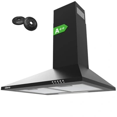 ENERGY EFFICIENCY COOKER HOOD: A++ energy efficiency cooker hood, designed to enhance your kitchen experience while minimizing energy consumption. MATTE BLACK SURFACE: The frosted black painting covered prevent finger prints and dust. It is more easy to clean and maintain. It shines a little bit under the light, which makes it more elegant and suitable for all the kitchen. 370m³/h SUCTION POWER: The suction power is strong enough freshen up your kitchen during your cooking hours. 3 speed levels can be chosen to meet your need. DUAL WORKING MODES: Mounted on wall and ducted outside with a 1.5m exhaust pipe (included), or simply place the CBCF002X2 carbon filters (shipped with) on the motor for the recirculating mode. EASY INSTALLATION: Offer full assembly accessories, including: 1 x bag of screws, 1 x pair of carbon filter, 2 x Aluminium grease filter, 2 x Chimney extension (40+40cm), 1 x Exhaust pipe (1.5m), 1 x Manual instruction , 1 x UK Standard Plug.