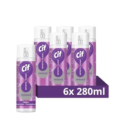 One Spray Cleans it All^: Cif Infinite Clean Lavender & Eucalyptus All in One Cleaner works throughout your home and beyond, cleaning hard surfaces and refreshing soft furnishings Experience Unmatched Versatility: From greasy kitchen hobs and dirty tiles to dusty bookshelves and smudgy glass tables, this multi surface cleaner handles it all Lavender & Eucalyptus Fragrance: Our cleaning spray leaves the house smelling clean and fresh with its invigorating continuous mist, making your home not just clean but also fragrant Long-Lasting Clean*: This cleaner spray is powered by probiotic technology that continues to clean for up to 3 days, even after you stop Safe for All: This cleaner spray is suitable for areas around kids*** and pets**