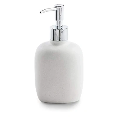white satin resin dispenser chrome metal pump Soft shapes, gives a natural touch to your bathroom Do not use aggressive cleaning products, we recommend a neutral detergent and a soft cloth