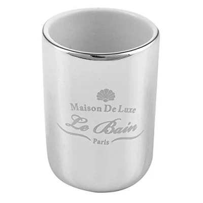 Silver chrome ceramic table accessories with retro decoration Ideal as a toothbrush holder Does not deteriorate in contact with water Do not use aggressive cleaning products, we recommend a neutral detergent and a soft cloth